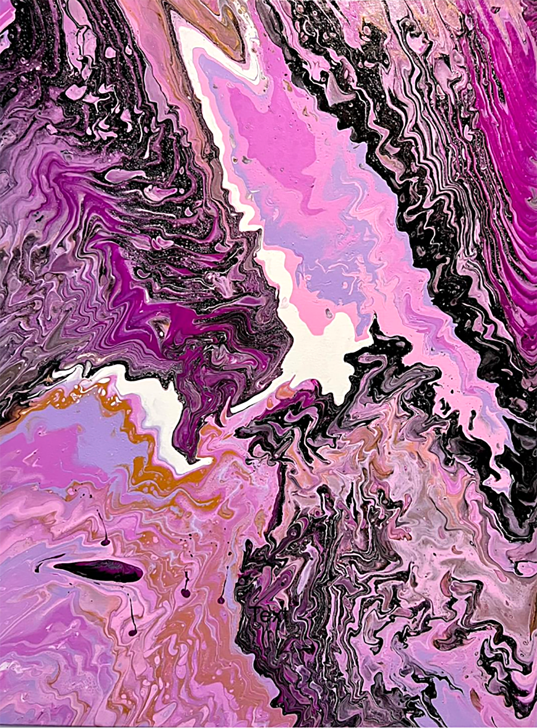 Vicki Tan, 28, explores freedom and fluidity through her signature acrylic pouring technique, which produces celestial, dreamscape-like images and scenes reminiscent of auroras and natural panoramas. Vicki’s practice spans ceramics, painting, and the violin, reflecting a deep connection to both visual and auditory forms of expression. She blends the tactile beauty of ceramics with the vibrant energy of painting, while her violin playing adds a musical dimension to her artistic life.